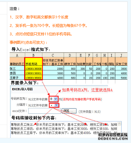 3、按如下圖制作工資條表格,選擇導入要發送的Excel 表格,操作方法和步驟如圖:
