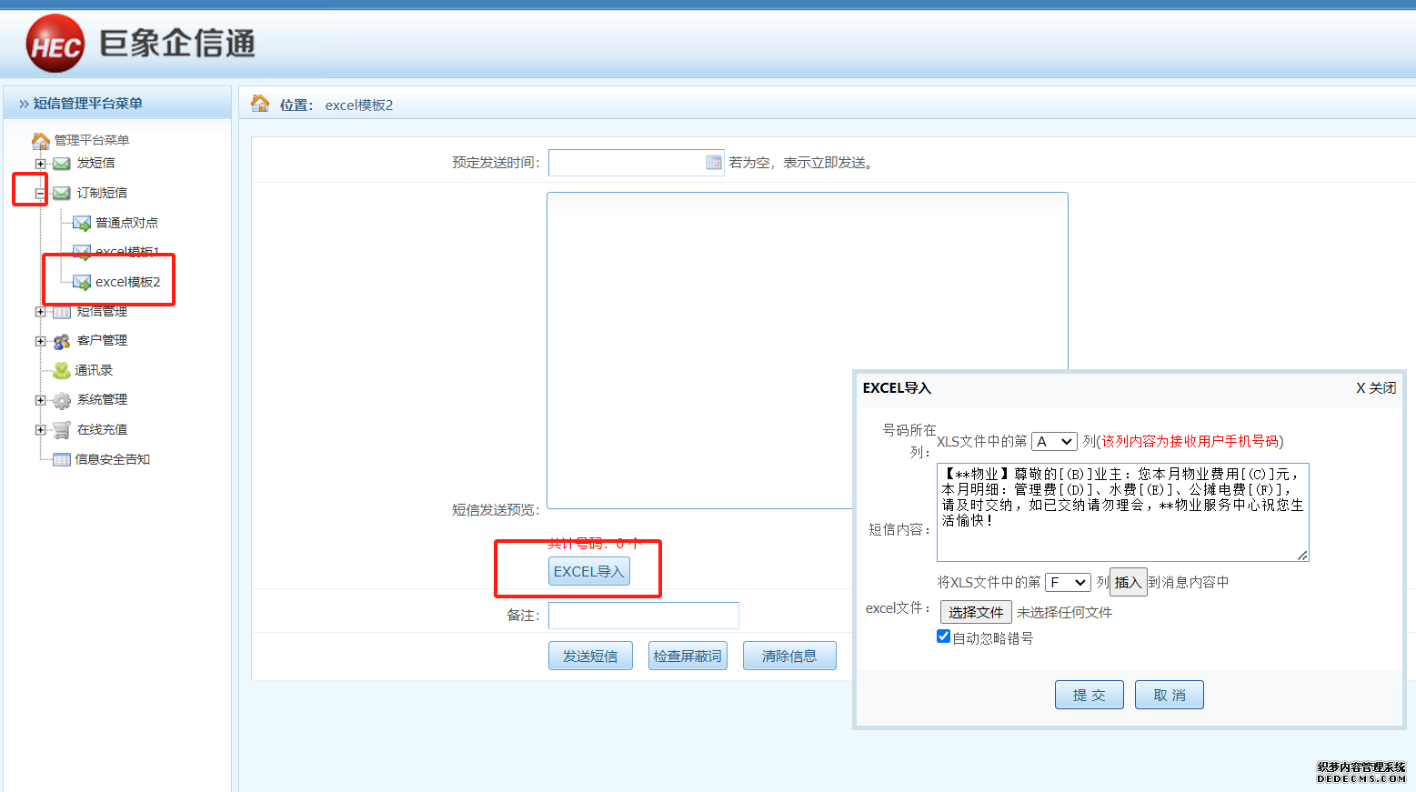 2、個性化變量短信群發操作,即一個批次群發的手機號碼收到的內容不完全一樣,如內容里加入稱呼、工資條、物業費、賽事編號、座位號、學號等。